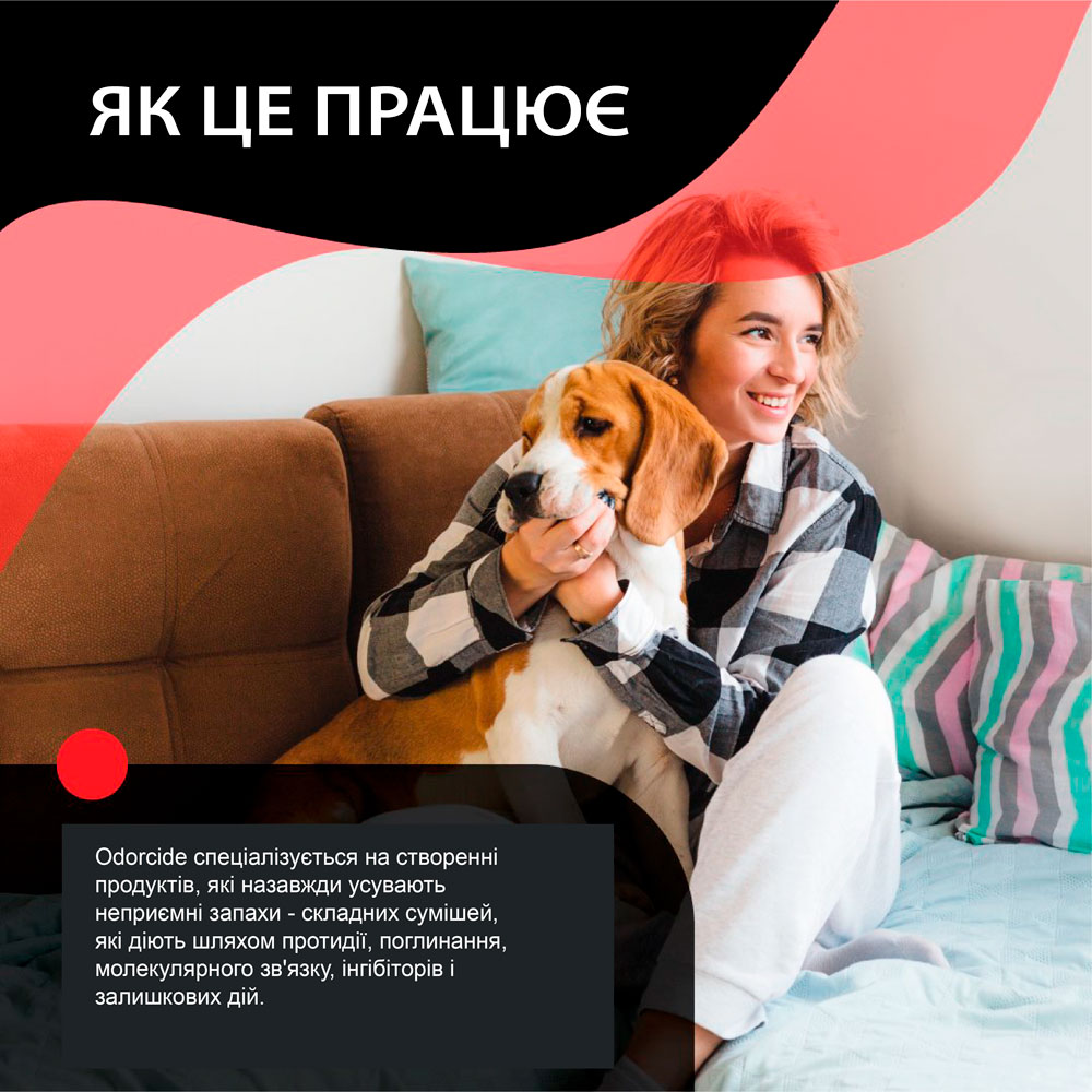 Вся продукція Odorcide є безпечною для використання на будь-якій поверхні. Дотримуйтесь вказівок на етикетці. Зберігати у недоступному для дітей місці. Тільки для зовнішнього застосування. Уникайте замерзання продукції.