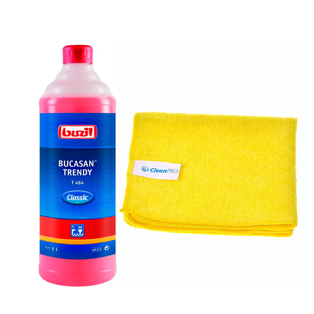 T464 Bucasan Trendy, средство для сантехники на основе амидосульфоновой кислоты, Buzil + микрофибра